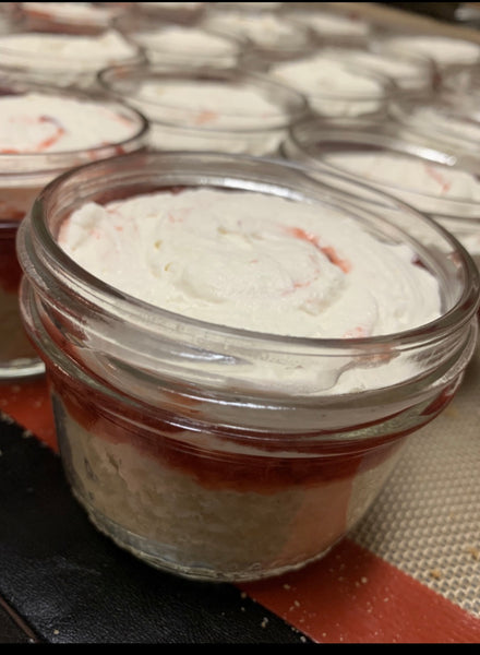 Strawberry shortcake: Vanilla cake with fresh strawberry filling and whipped cream