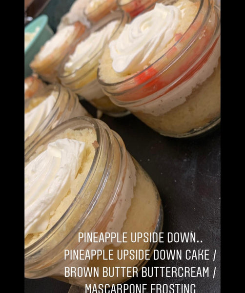 Pineapple upside down cake: Pineapple upside down cake with brown butter buttercream & whipped cream